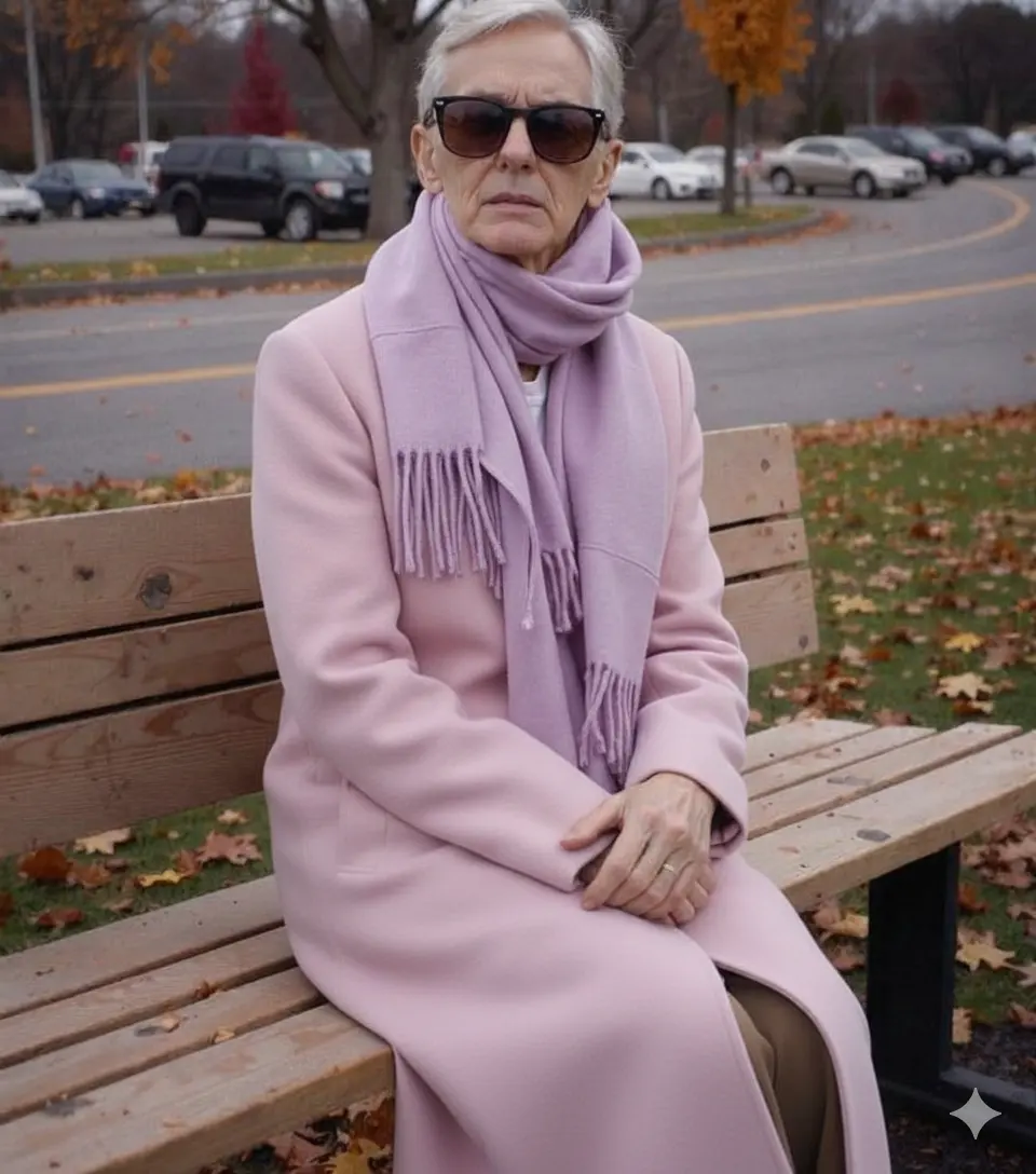 At the far end of the bench sat an older woman, maybe 70, dressed in a neat cream-colored coat and dark sunglasses. She’d been so still I hadn’t even noticed her. She turned her head slightly toward me, and when she spoke, her voice was calm and dry.