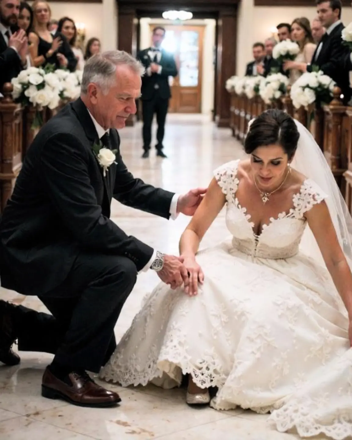 My heel caught. My ankle twisted. I pitched forward, arms flailing, my bouquet flying from Hailey’s hands as I crashed to my knees on the marble floor.